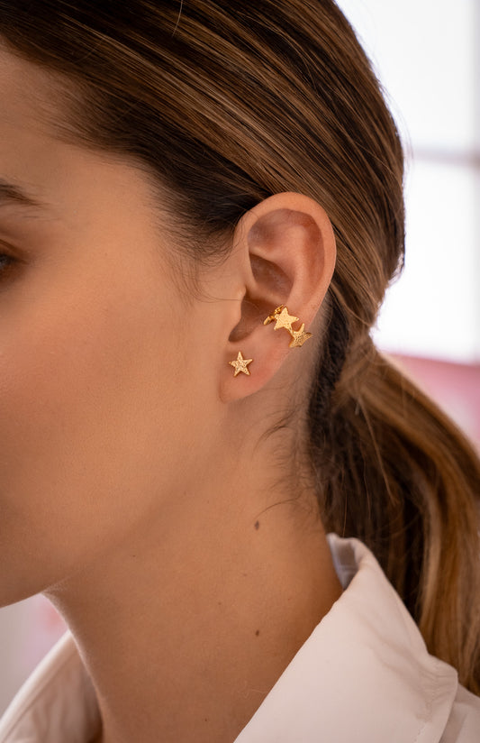 Set De 1 Par de Aros Estrella Gold + Ear Cuff