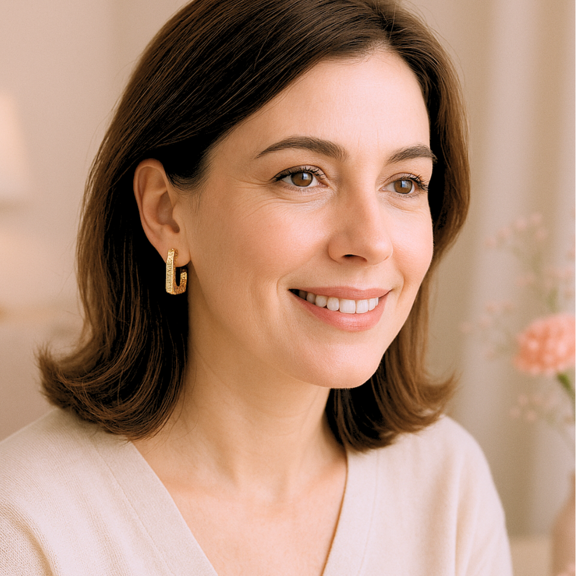 Con un elegante diseño cuadrado de textura martillada, estas argollas están elaboradas a mano en bronce + zinc y bañadas en oro. Un básico imprescindible si amas potenciar tu estilo.