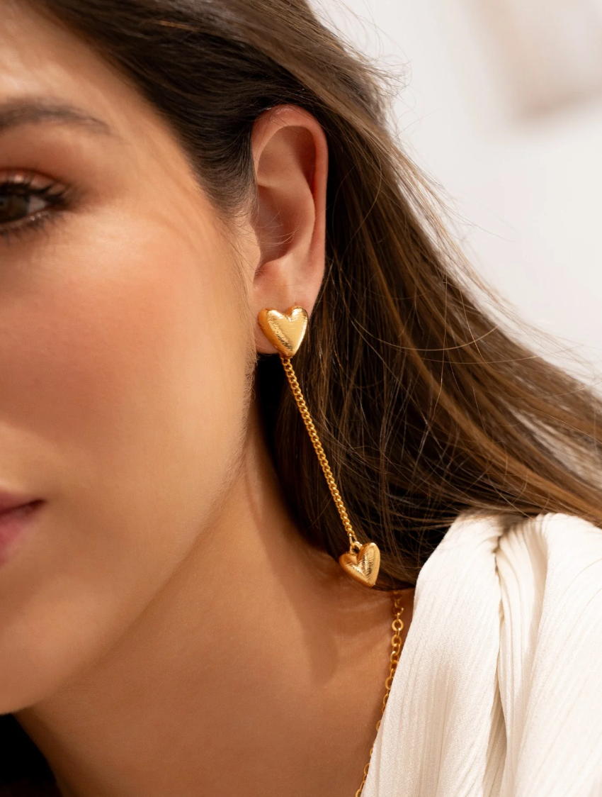 Luce el doble de estilo con nuestros Aros Corazón Dos en Uno, una joya hecha a mano con cuentas de alta calidad y baño en oro de 24 kilates que te permite reinventar tu look en segundos. 💛