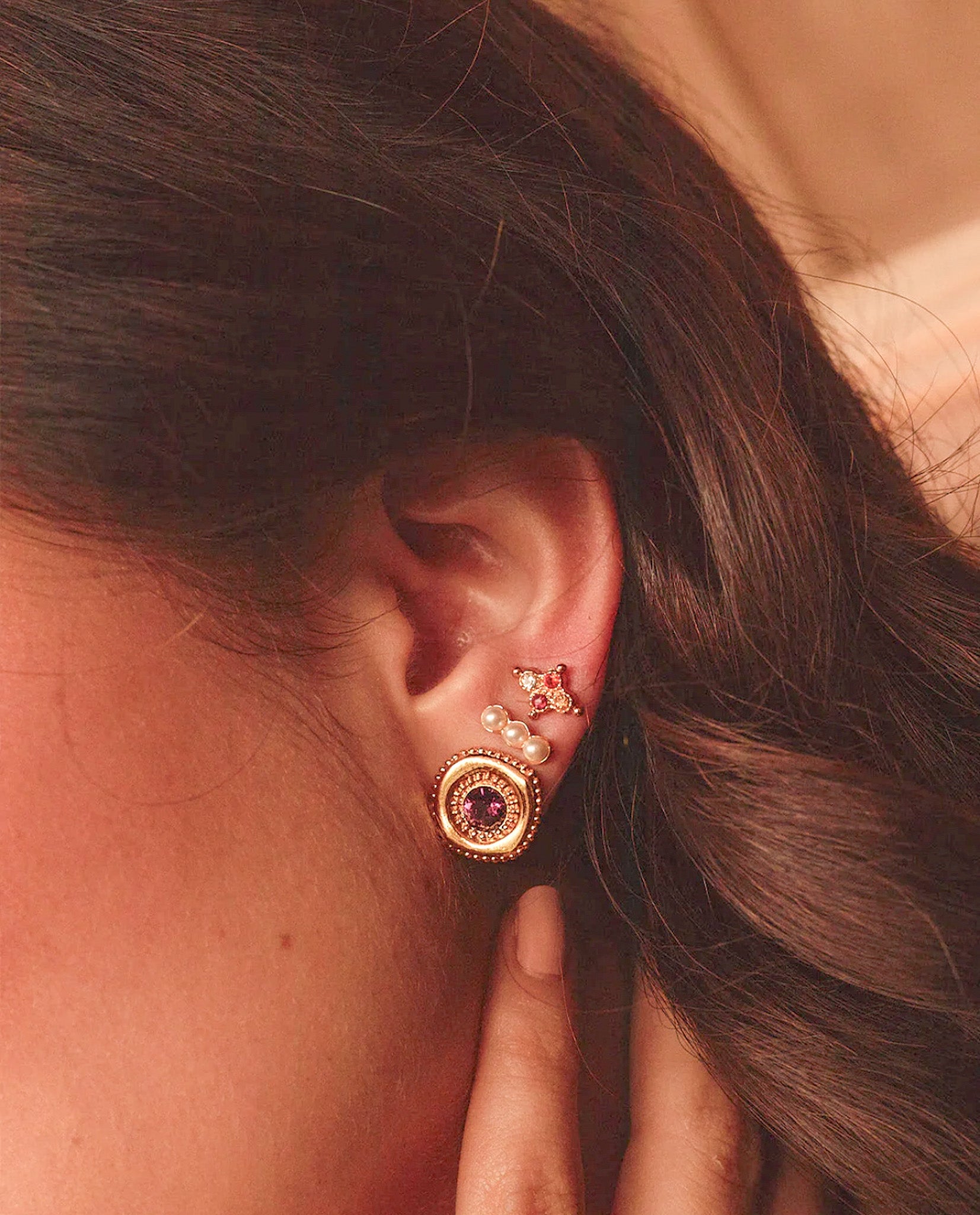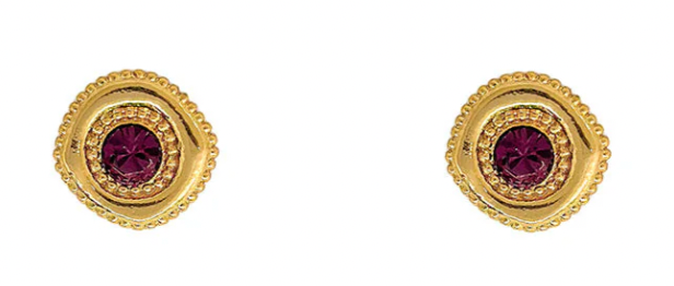 ¡Dale a tus outfits un toque de brillo y estilo con AROS DESTINO! Con su diseño de ojo turco, están bañados en oro de 24ky cuenta on un lindo cristal en tonos violetas.