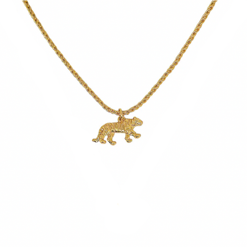 Potencia tu look con nuestro collar FUERZA. El dije de tigre bañado en oro de 24k simboliza tu fuerza, coraje y determinación. Una pieza perfecta para cualquier ocasión que te hará sentir poderosa y segura de ti misma.